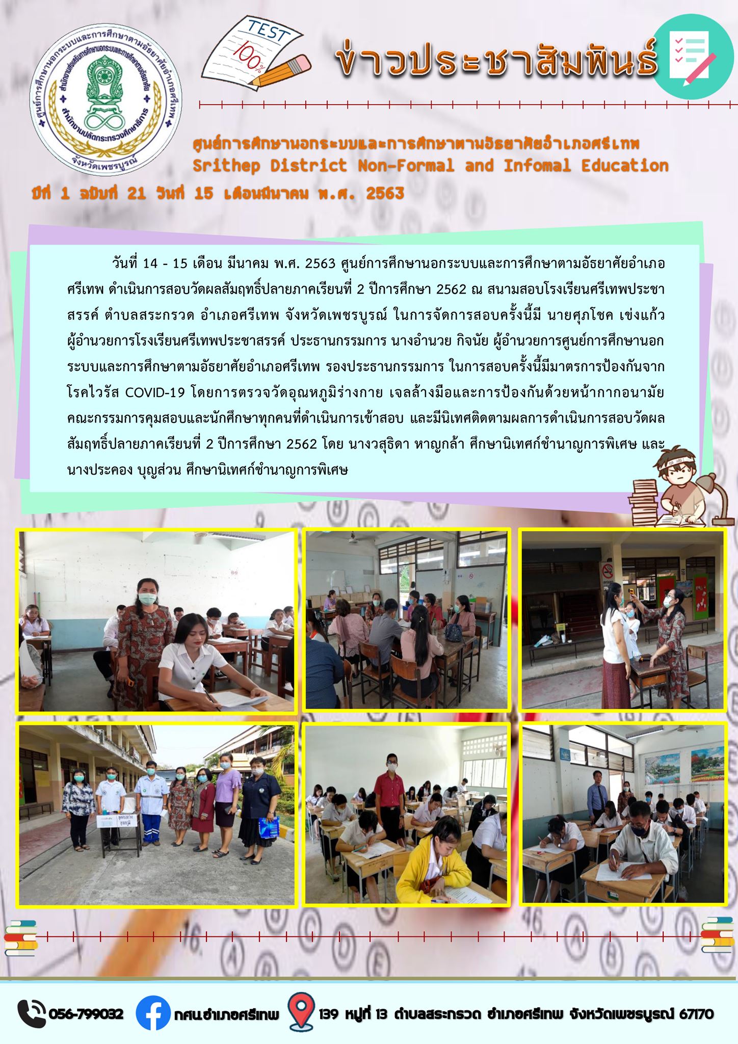 กศน.อำเภอศรีเทพสอบวัดผลสัมฤทธิ์ภาคเรียนที่ 2 ปีการศึกษา 2562