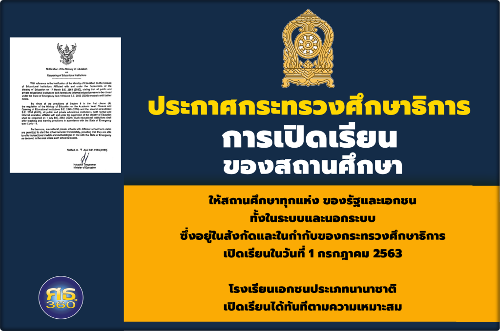 ประกาศกระทรวงฯ เรื่อง การเปิดเรียนของสถานศึกษาในสังกัดและในกำกับของกระทรวงศึกษาธิการ