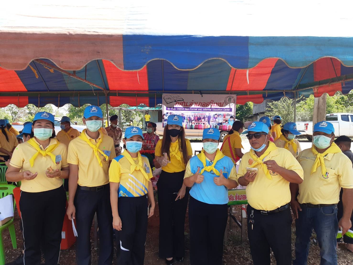 วันที่ 3 เดือนมิถุนายน พ.ศ. 2563 เวลา 09.00 น. นางอำนวย กิจนัย ผู้อำนวยการศูนย์การศึกษานอกระบบและการศึกษาตามอัธยาศัยอำเภอศรีเทพ เข้าร่วมพิธีลงนามถวายพระพรชัยมงคล ณ หอประชุมอำเภอศรีเทพ เวลา 09.30 น. ดำเนินการจัดกิจกรรมร่วมกับอำเภอศรีเทพประกอบไปด้วย 1)กิจกรรมปลูกป่า 2)กิจกรรมการสาธิตการสร้างอาชีพให้กับประชาชน 3)กิจกรรม “ตู้ปันสุข” เนื่องในโอกาสวันเฉลิมพระชนมพรรษาสมเด็จพระนางเจ้าฯ พระบรมราชินี ประจำปีพุทธศักราช 2563 ณ ที่สาธารณะหมู่ที่ 3 บ้านหนองย่างทอย ตำบลหนองย่างทอย อำเภอศรีเทพ จังหวัดเพชรบูรณ์ โดยมี นายสหชัย แจ่มประสิทธิ์สกุล นายอำเภอศรีเทพเป็นประธานในพิธี ในการจัดกิจกรรมครั้งนี้มีประชาชน จิตอาสา สนใจฝึกกิจกรรมสาธิต การทำเกี้ยวห่มผ้า การทำหมูปิ้งนมสด การทำน้ำสมุนไพรและการทำพรมเช็ดเท้า
